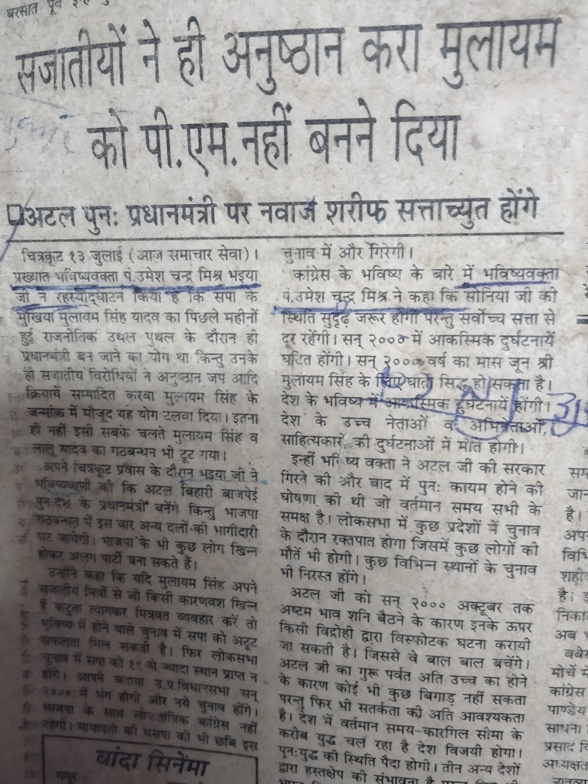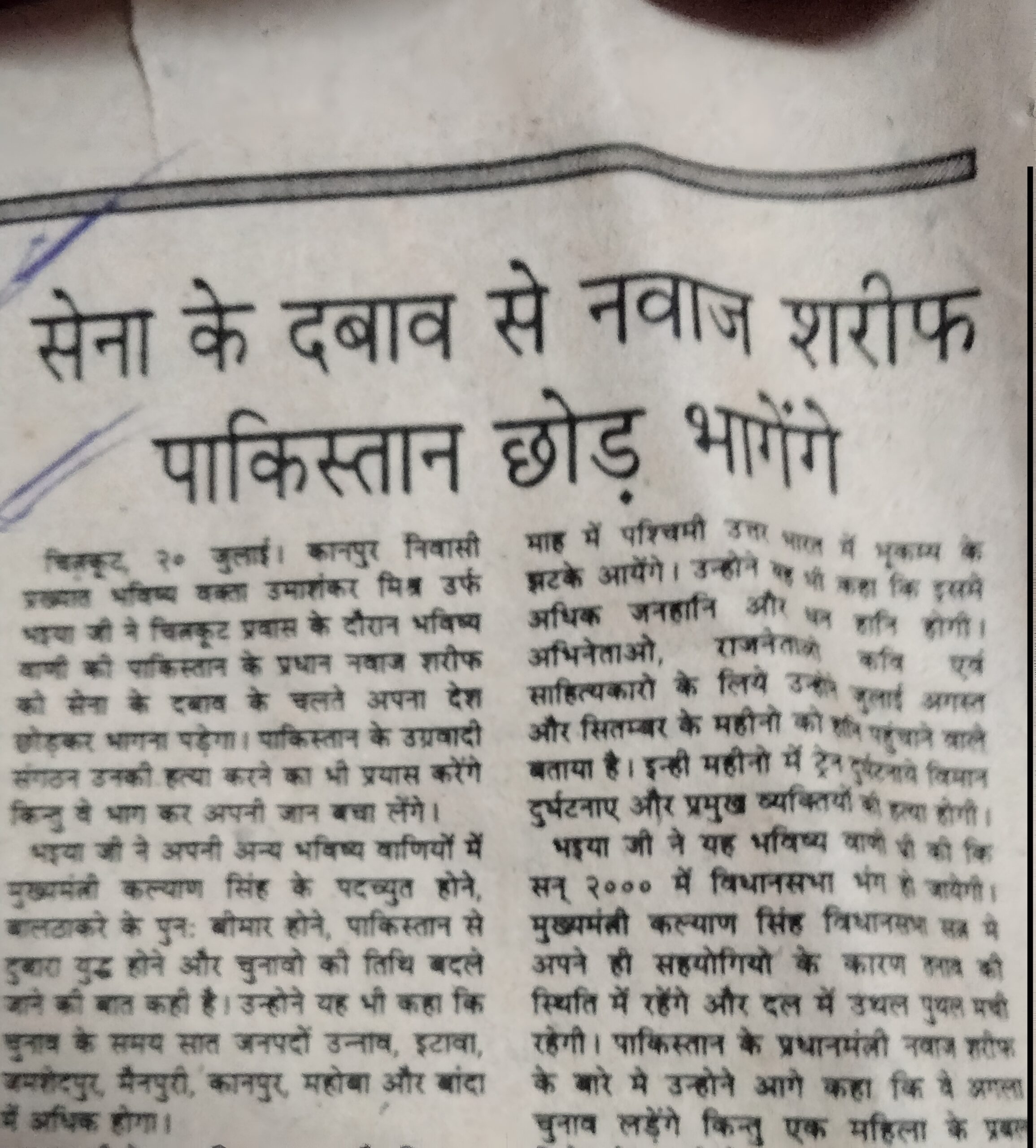 Some Proofs Of His Bhavisyavaani On NewsPaper In Year 1999
